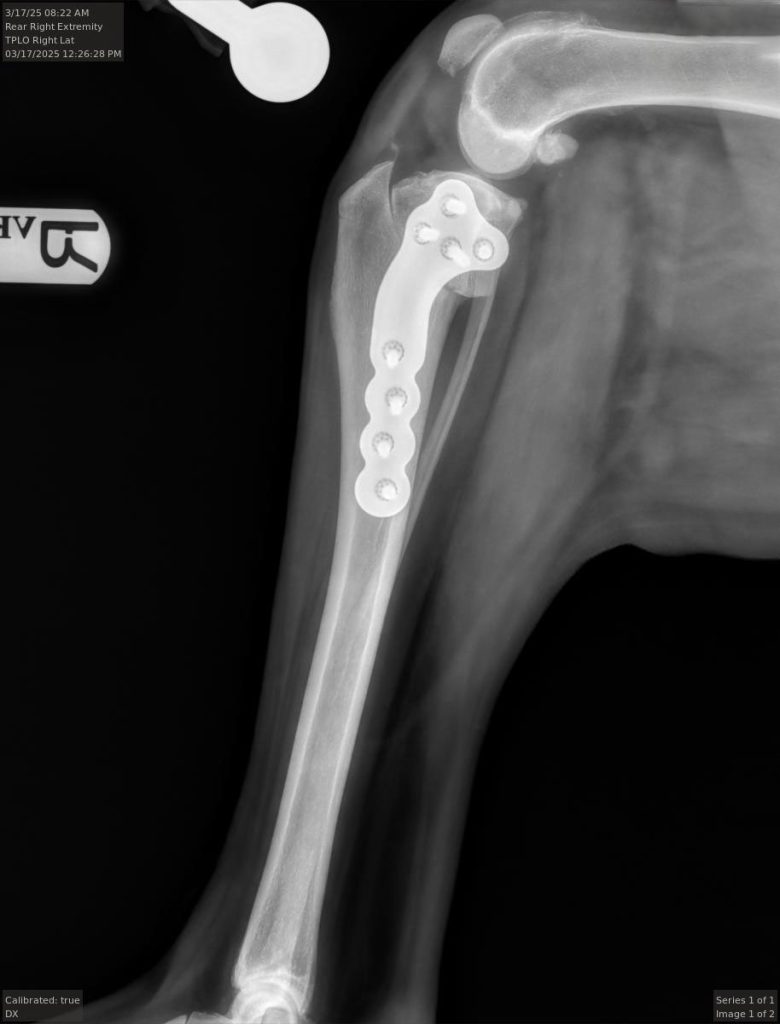 Tibial Plateau Leveling Osteotomy, or TPLO, is a surgery that is commonly performed on medium to large breed dogs suffering from injury, or tear, of the cranial cruciate ligament. This surgery changes the angle of the tibial plateau, alleviating abnormal movement of the tibia that causes pain and discomfort.
